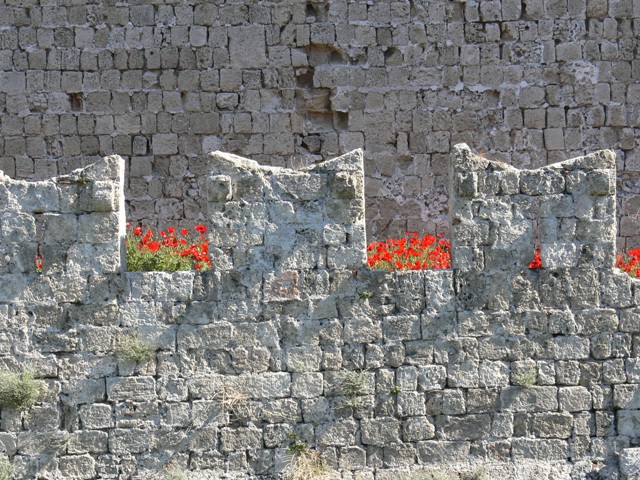 Klatschmohn auf der Altstadtmauer, in Rhodos |